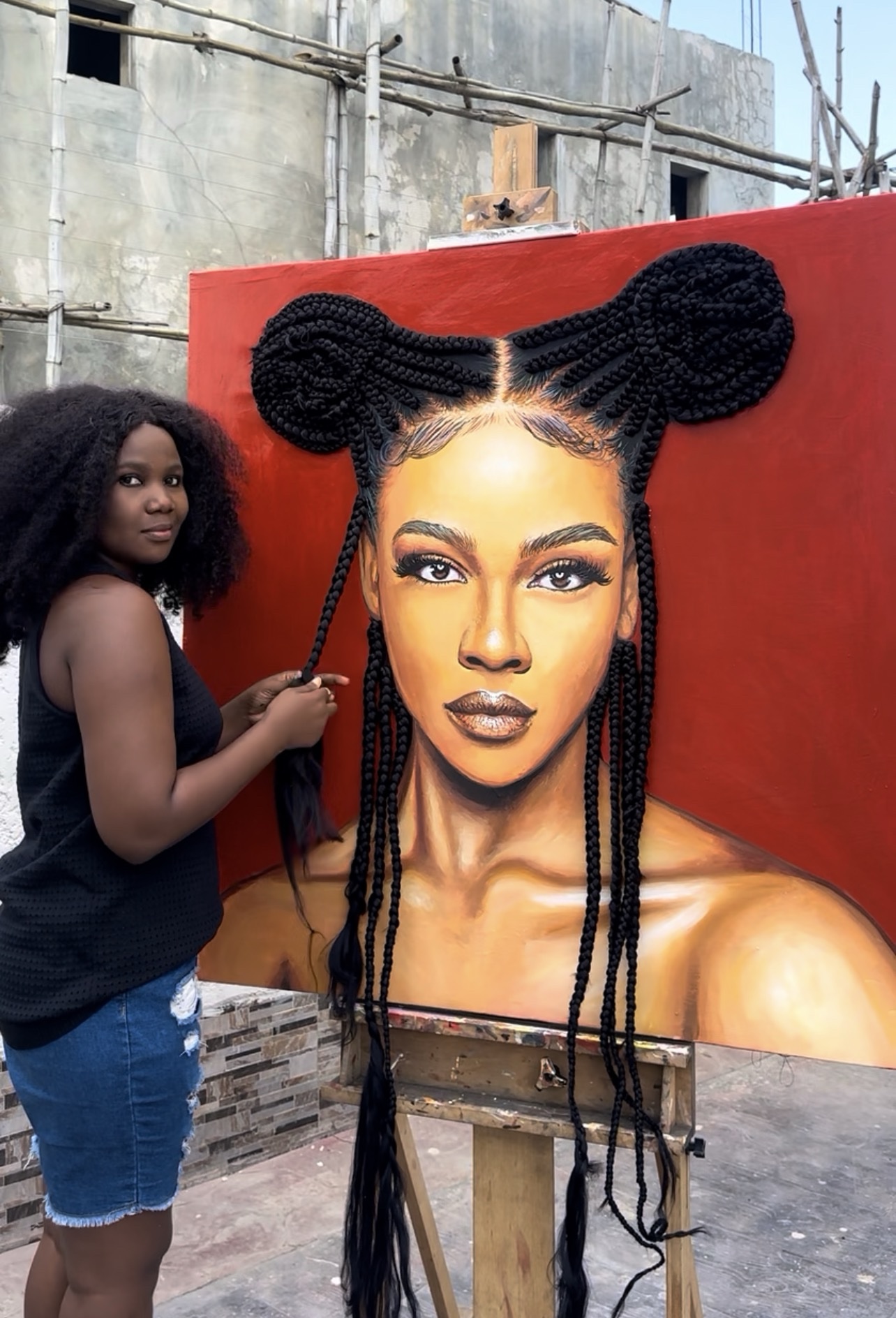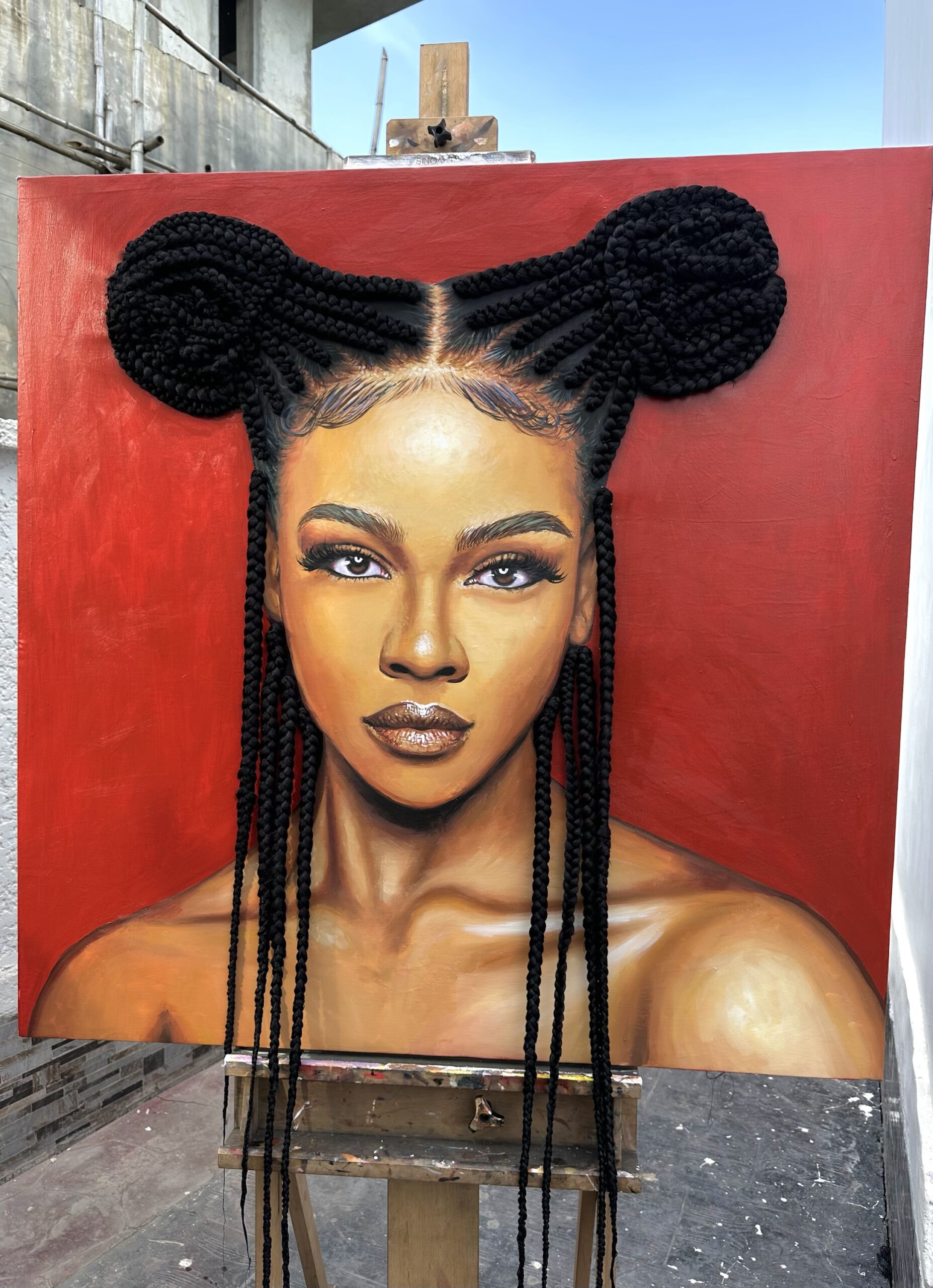 3×4 feet mixed media painting with real hair. original piece hand painted by the artist